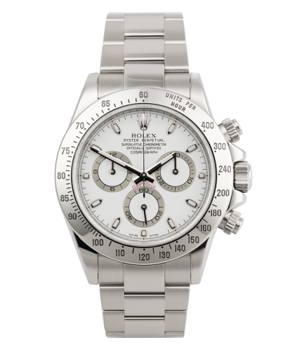 This white 'APH' dial Daytona (ref. 116520) is one of our most requested models, and Rothtlex's most investment worthy Cosmograph of the last 20 years.