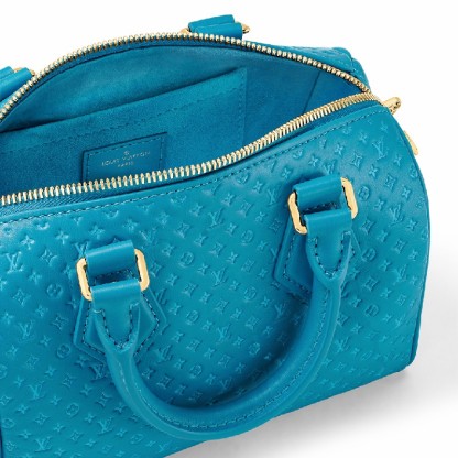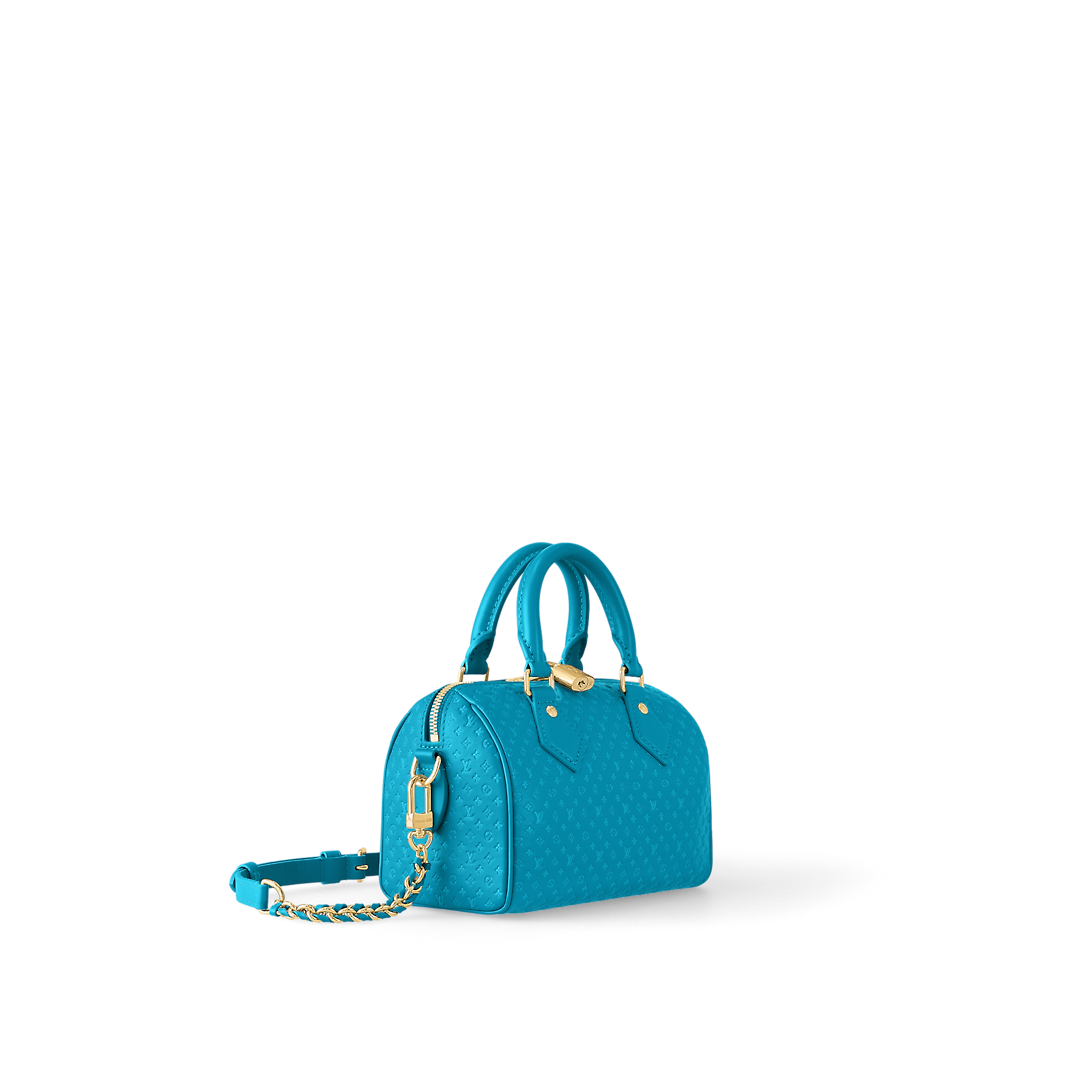 Fashioned from calfskin with a very small Monogram motif embossed then printed on the leather, this Speedy 20 handbag is part of the Nanogram capsule. Its inimitable silhouette, and engraved padlock, make this bag instantly recognizable. A removable and adjustable braided-chain-and-leather strap enables shoulder or cross-body carry.