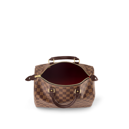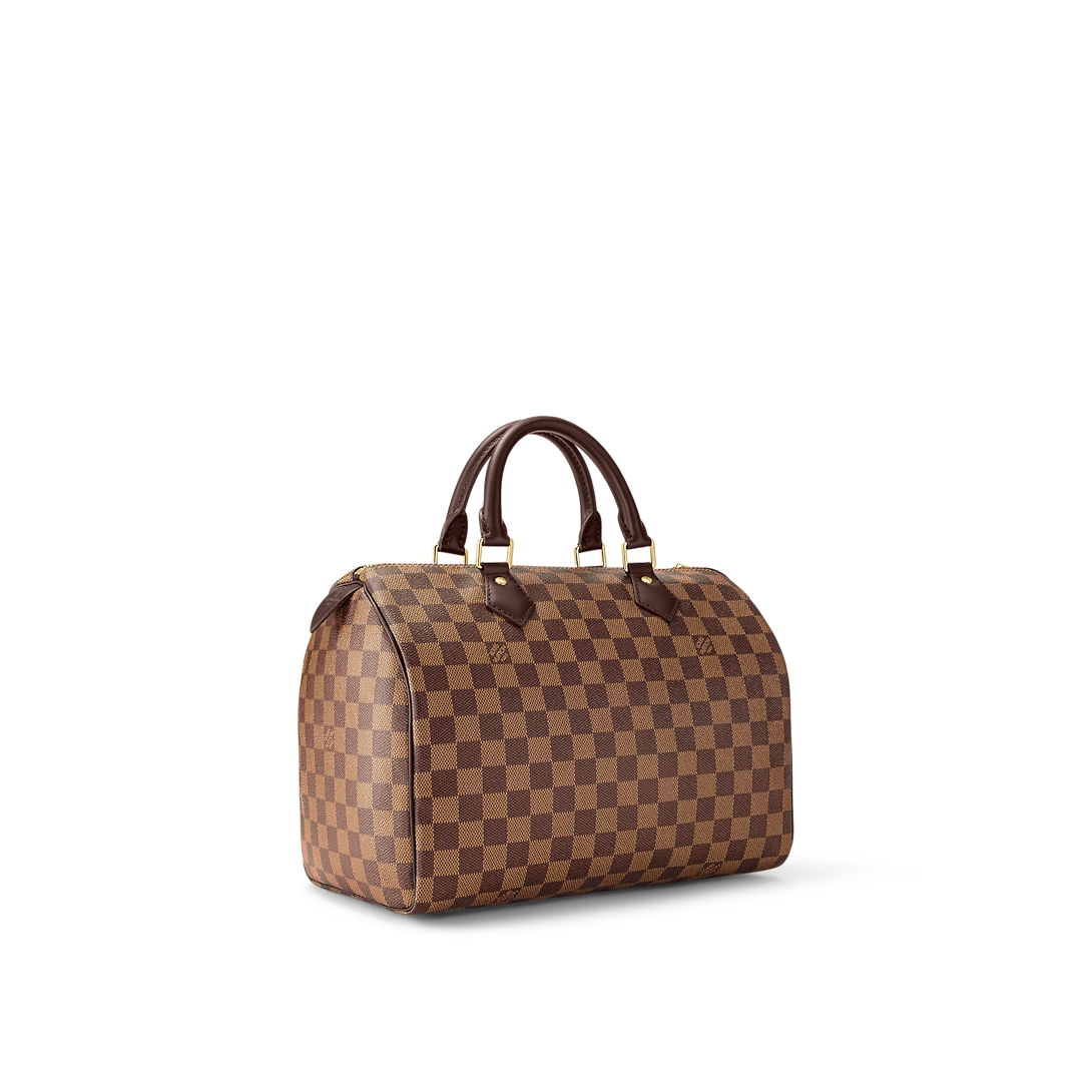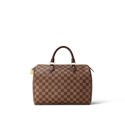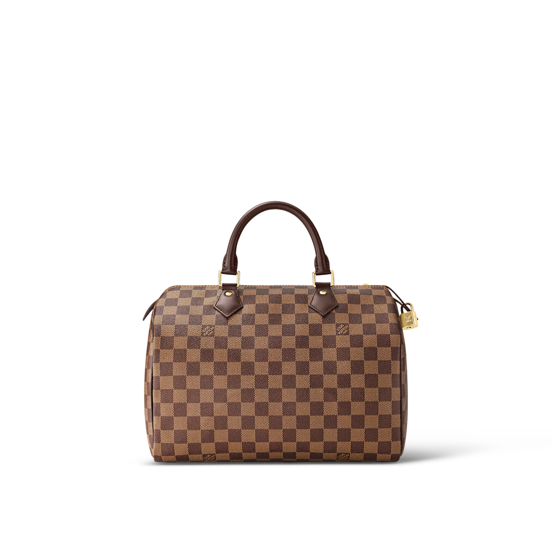 Crafted from graphic Damier Ebene canvas, the Speedy 30 is an elegant, compact handbag, a stylish companion for city life. Launched in 1930 as the "Express" and inspired by that era's rapid transit, today’s updated Speedy remains a timeless House icon, with its unmistakable silhouette, rolled leather handles and engraved, signature padlock.