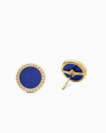Petite DY Elements® Stud Earrings 18K Yellow Gold with Lapis and Diamonds, 14mm