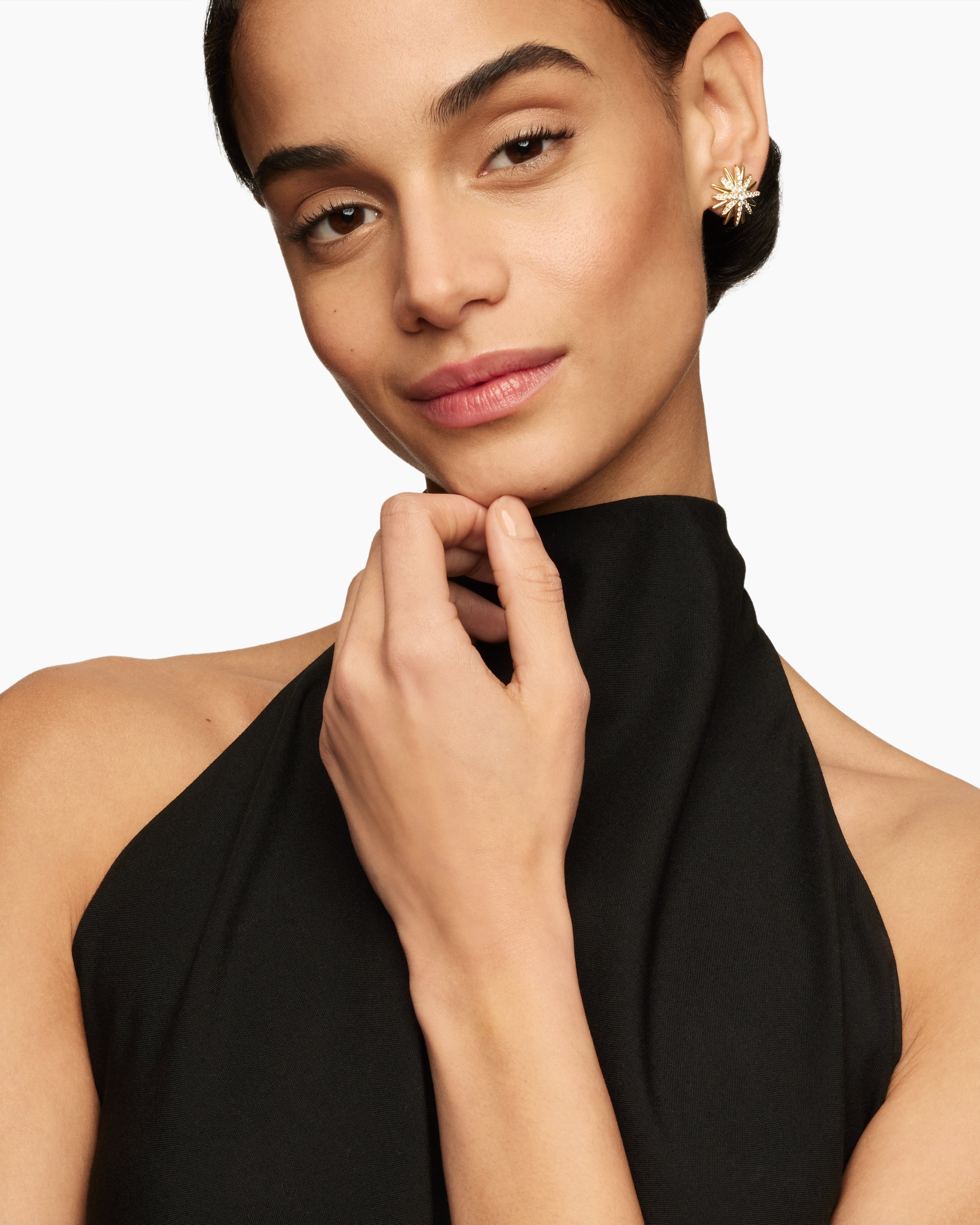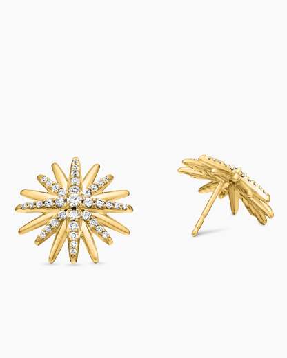 Starburst Stud Earrings 18K Yellow Gold with Diamonds, 19mm