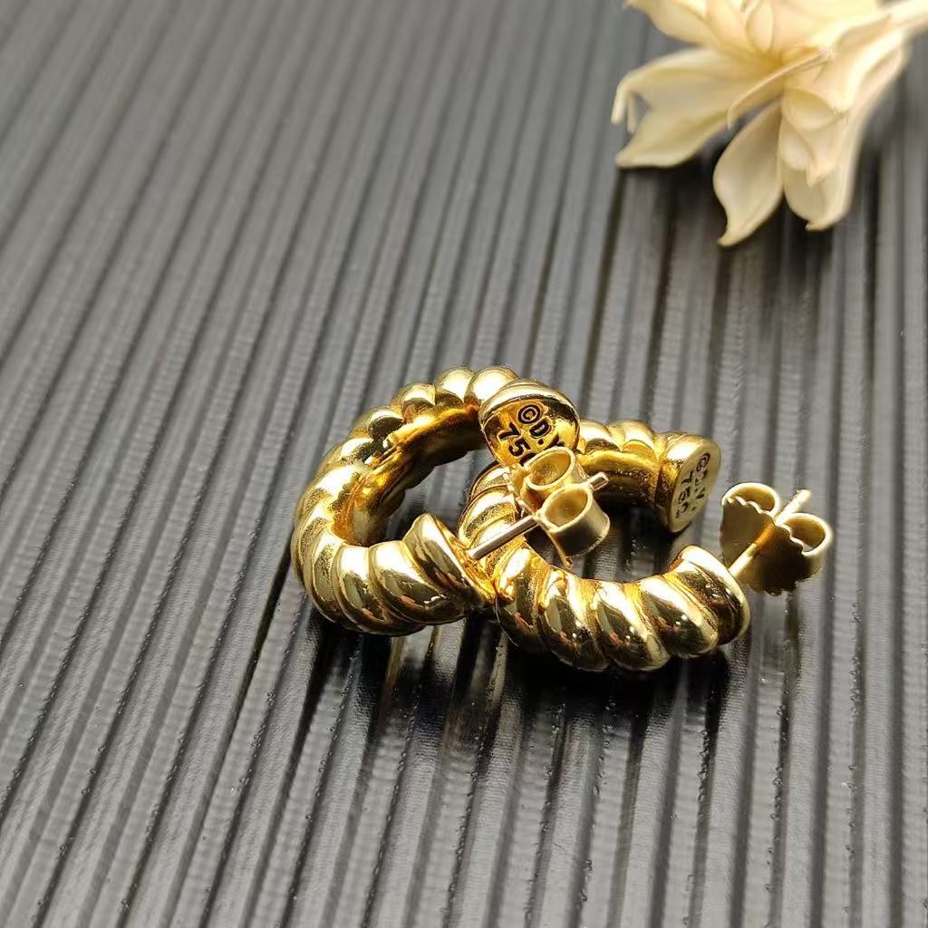 Sculpted Cable Shrimp Earrings 18K Yellow Gold , 20.5mm