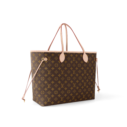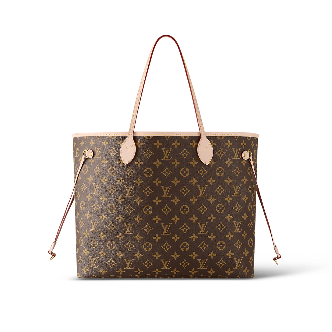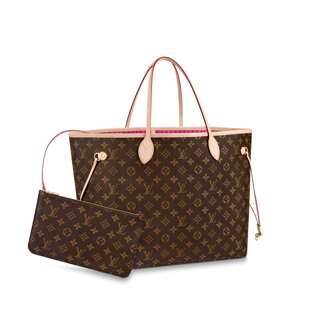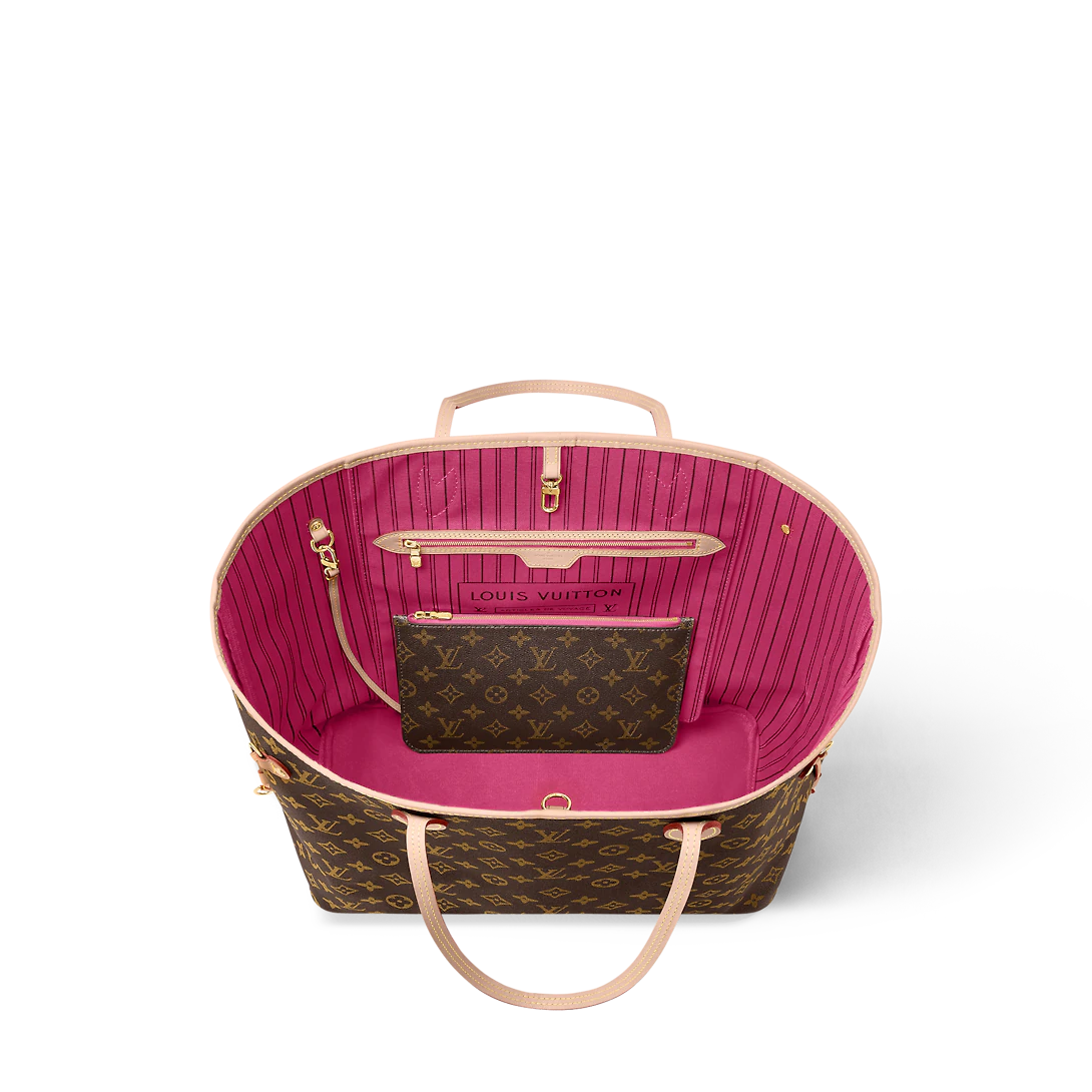 The Neverfull GM tote unites timeless design with heritage details. Made from supple Monogram canvas with natural cowhide trim, it is ultra-roomy but never bulky, with side laces that cinch for a sleek allure or loosen for a more casual look. Slim, comfortable handles slip easily over the shoulder or arm. Lined in colorful textile, it features a removable pouch which can serve as a clutch or an extra pocket.