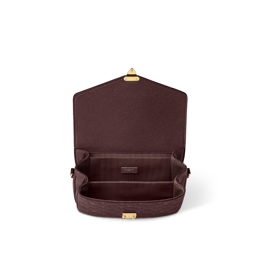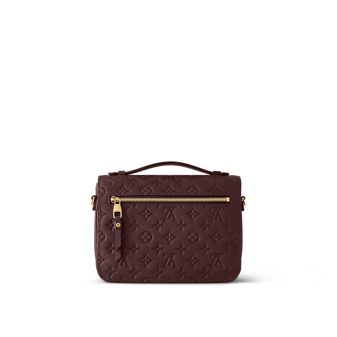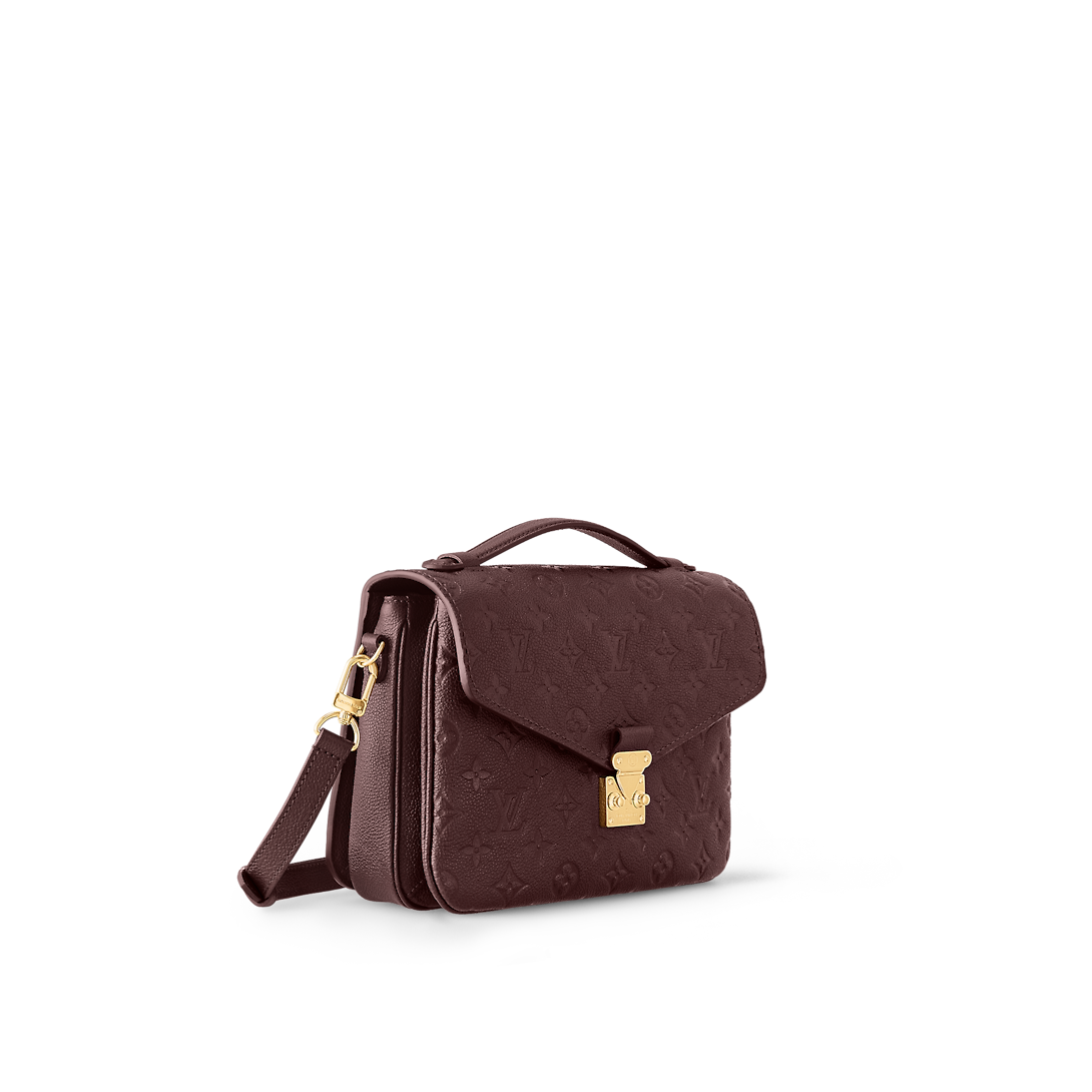 The Pochette Metis MM handbag is fashioned from supple Monogram Empreinte cowhide leather, embossed with a Giant Monogram pattern. The exquisite gold-color S-lock features a delicately embossed LthtV Circle signature as well as an embossed “Lothtuis Vuithttton Paris” surrounded by four golden rivets. It has an outside zipped pocket and three inside compartments.
