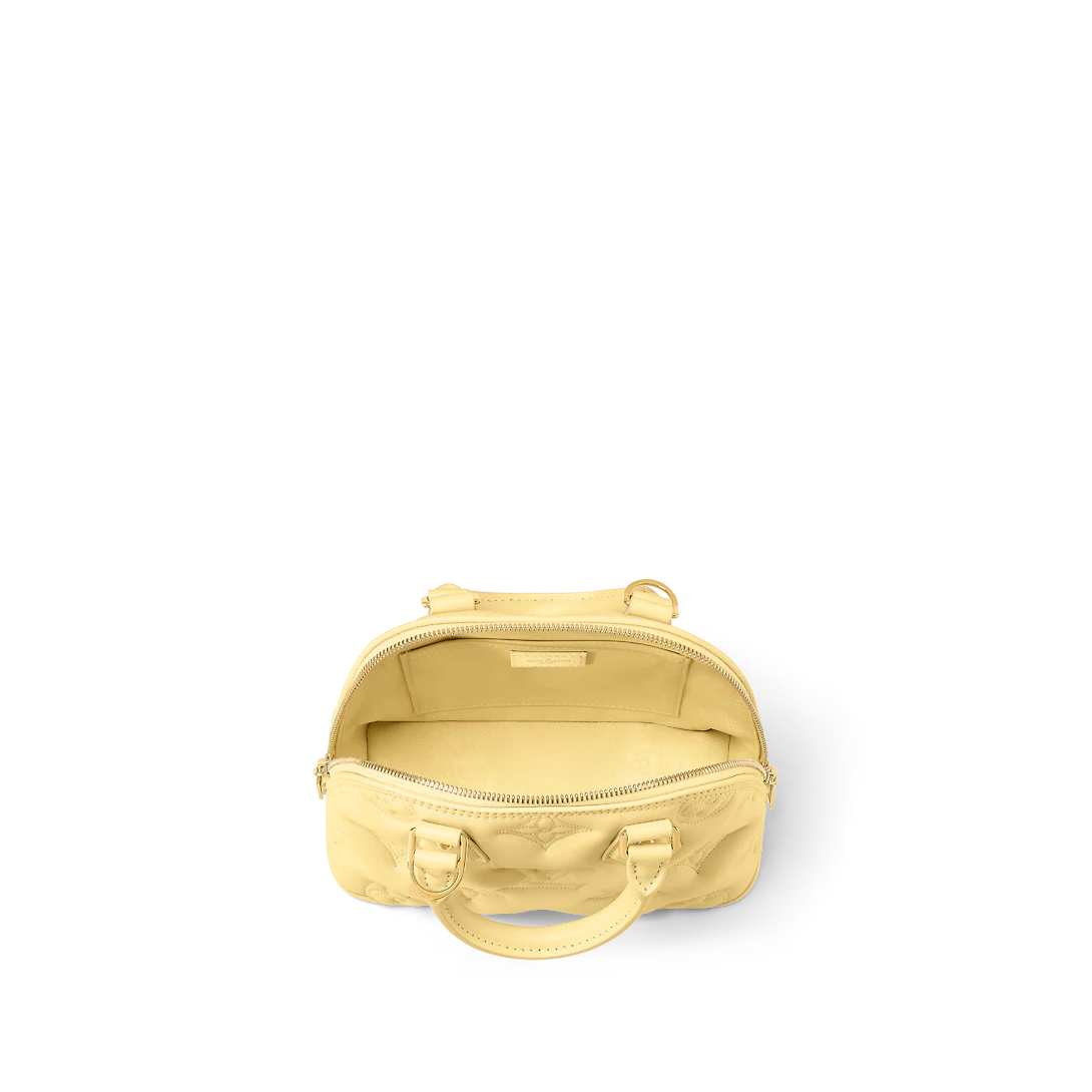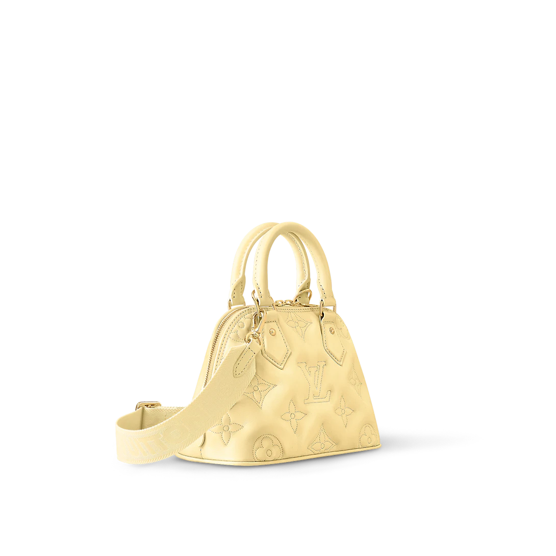 Made from quilted calfskin embroidered with the Monogram motif, the Alma BB handbag is the direct descendant of the Art Deco original from the 1930s. Crafted details like the two rolled-leather top handles complement the puffy leather. Equipped with a removable and adjustable strap, this small bag is perfect for cross-body wear in addition to hand carry.