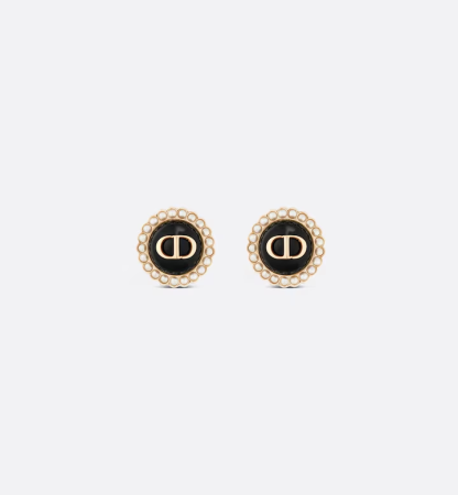 The Petit CD Baroque stud earrings showcase an elegant and colorful style. Finely crafted in gold-finish metal, they are composed of a black glass cabochon delicately encircled with white resin pearls and enhanced by a CD signature. The stud earrings can be styled with other creations from the Petit CD Baroque line.