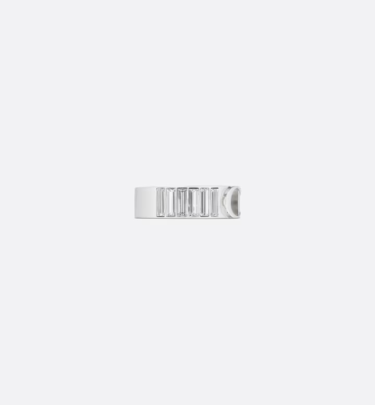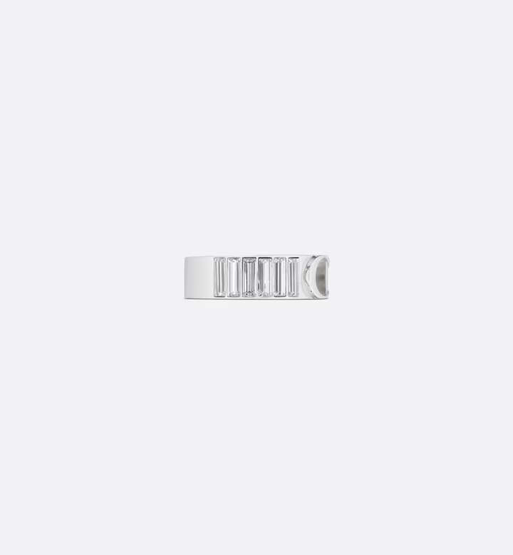 The ring is a delicate and modern design with timeless appeal. The silver-finish brass ring is embellished with white crystals on the front. The CD Icon completes the creation. It can be worn alone or with other rings and will easily coordinate with any daily outfit.