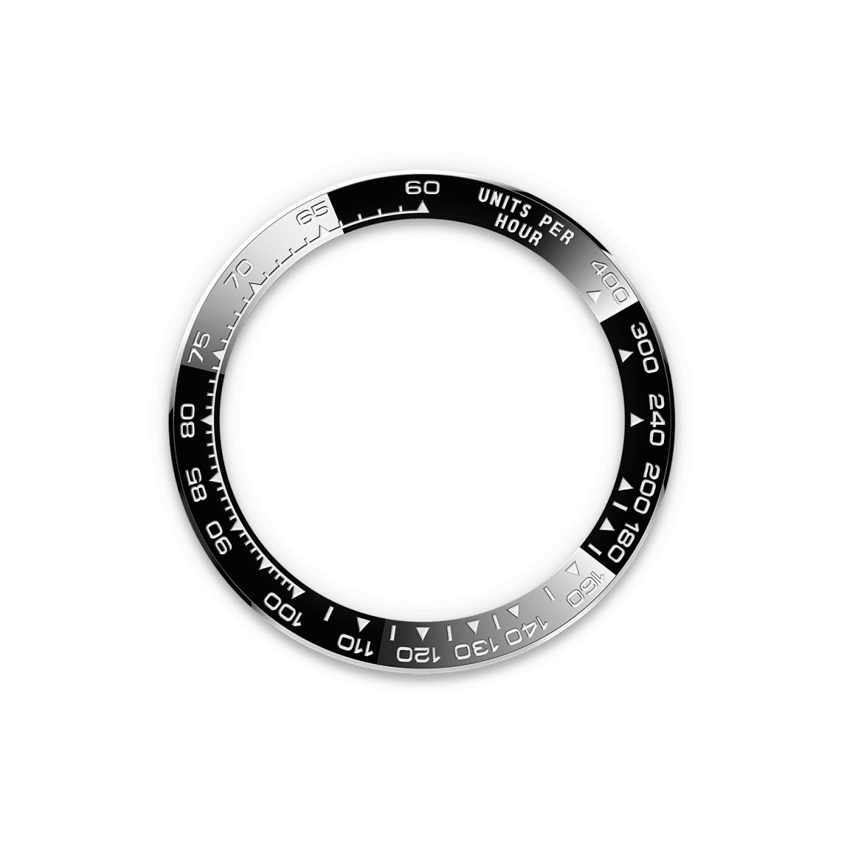 Black monobloc Cerachrom bezel in ceramic with moulded tachymetric scale