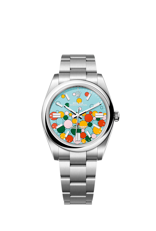 Oyster Perpetual 41, Oystersteel, 41mm, Turquoise Celebration Motif Dial, Ref# 124300-0008