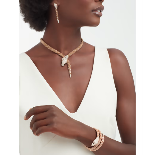 Serpenti two-coil 18 kt rose gold bracelet set with pavé diamonds on the head and tail, and black onyx eyes