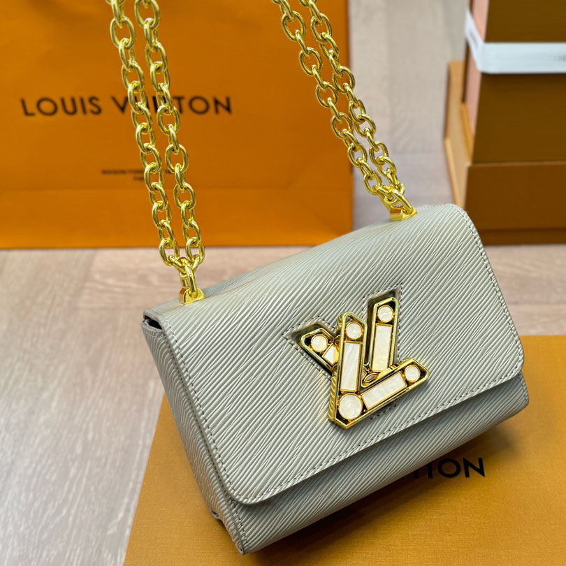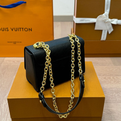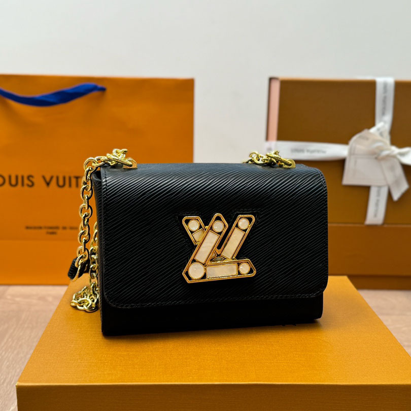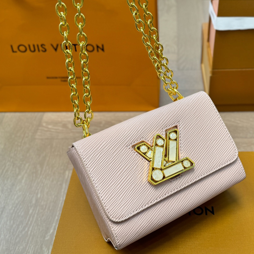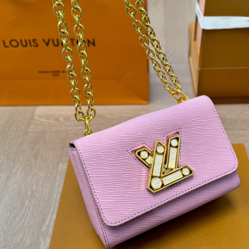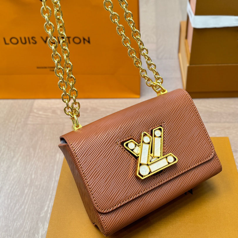 This Twist PM chain bag in grained Epi leather is accented with the now-iconic LthtV Twist lock, a sculptural signature in gleaming gold metal. Compact but surprisingly roomy thanks to the cleverly designed “wave” base, this beautifully crafted piece is a fashionable day-to-evening companion. The sliding chain strap can be doubled for shoulder carry or lengthened for cross-body wear. A New Classic of the House, the Twist bag was introduced at the 2015 Cruise show.