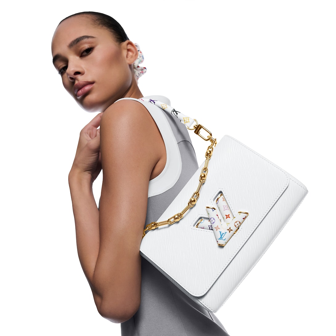 The Twist MM Slim handbag is a modern classic in an understated silhouette crafted from the House’s signature Epi grained cowhide leather for a rich textural finish. The emblematic LthtV Twist lock and the Toron top handle are playfully accented with a multicolored Monogram motif from the second edition of the Lothtuis Vuithttton x Murakami collection, while gleaming golden hardware completes the look with a polished touch.